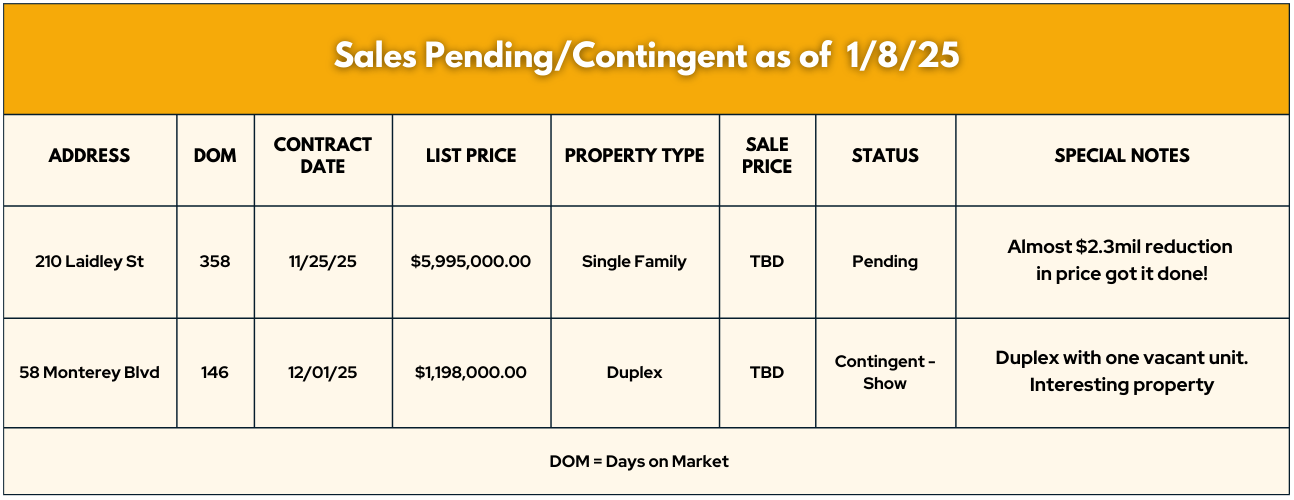 - Compass -Anywhere Merger – This looks like it’s going to be consummated on January 9 (so by the time this posts). For those of you haven’t heard of “Anywhere,” you probably actually have. This is a huge real estate company that currently includes: Sotheby’s, Coldwell Banker, Better Homes and Gardens, Century 21, Corcoran (but not the SF wing that used to be Zephyr), and ERA. What does that mean for buyers and sellers–in my opinion, not much. Work with a real estate agent you like who is professional and has connections in the industry. If that’s an agent with this massive conglomerate, go for it, but if it’s not, don’t worry that you’re missing out on anything due to their size. Speaking from personal experience I can tell you that a good agent under ANY brokerage is going to do an excellent job for you and will have access to all networks.